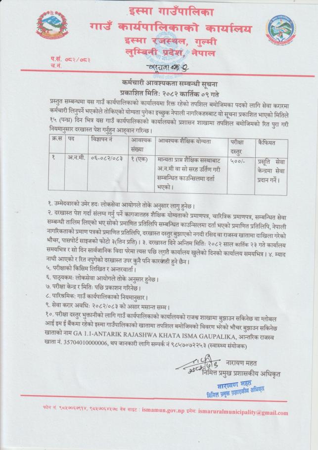 कर्मचारी आवश्यकता सम्बन्धी सूचना