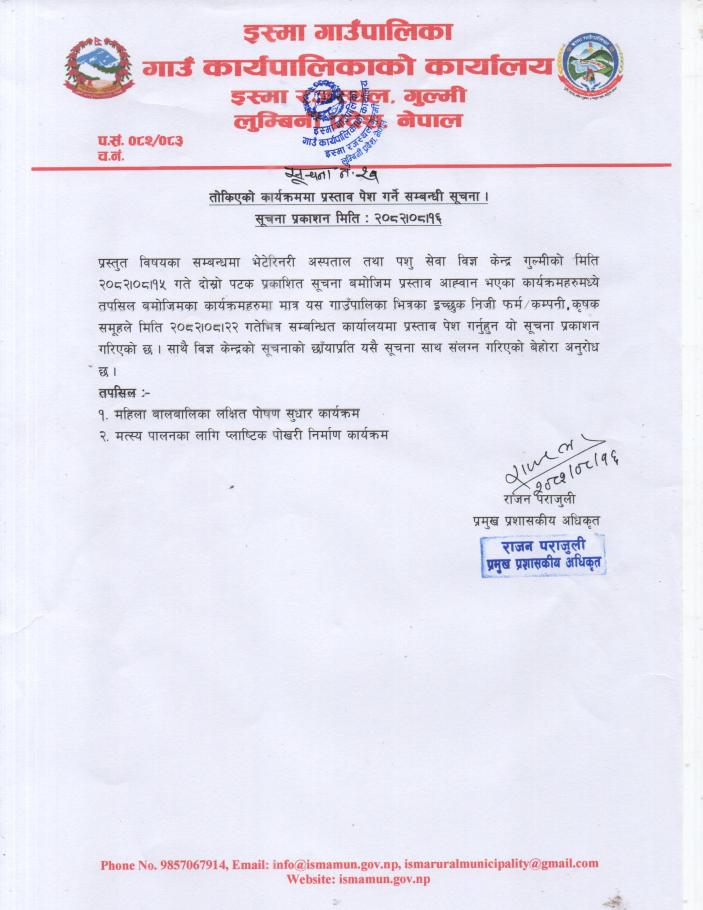 प्रस्ताव पेश सम्बन्धी सूचना ।
