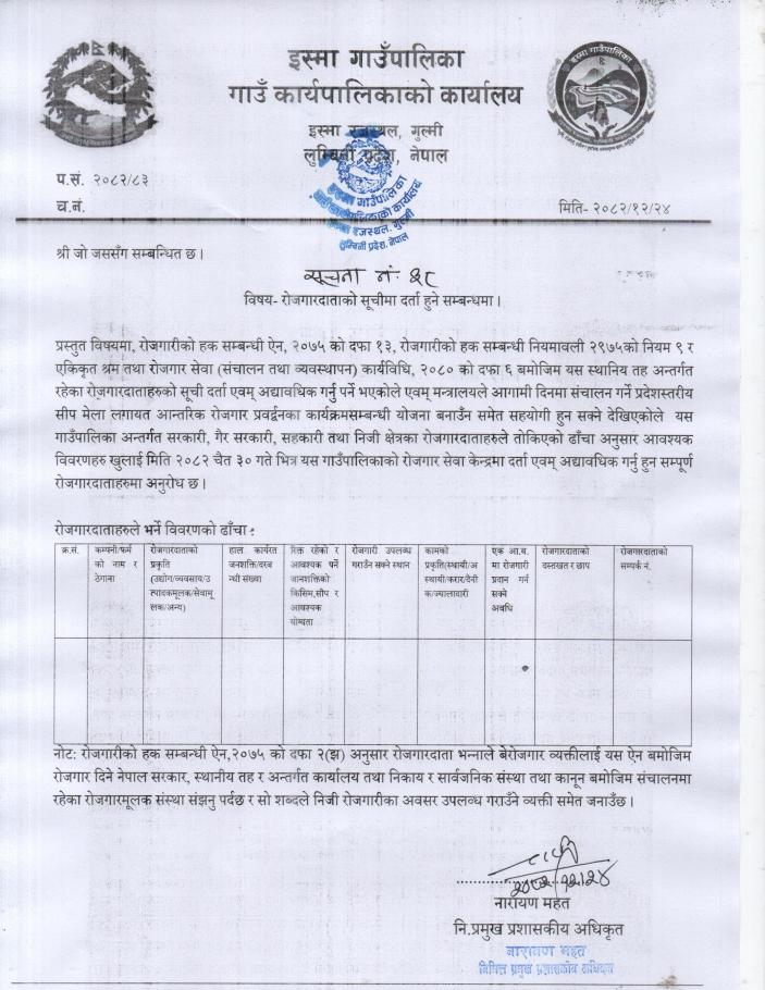 रोजगारदाताको सूचीमा दर्ता हुने सम्बन्धमा ।