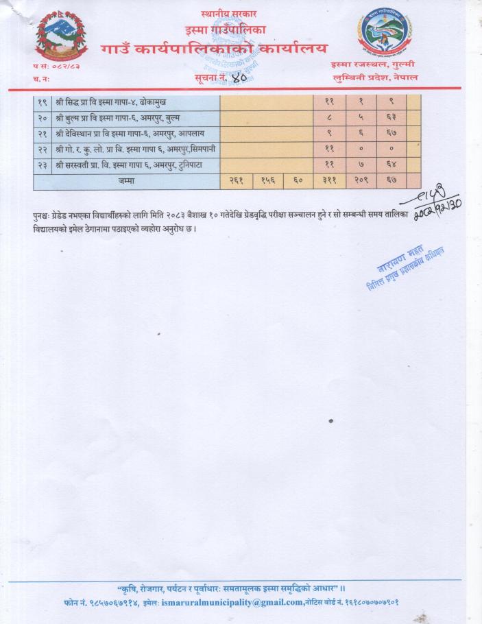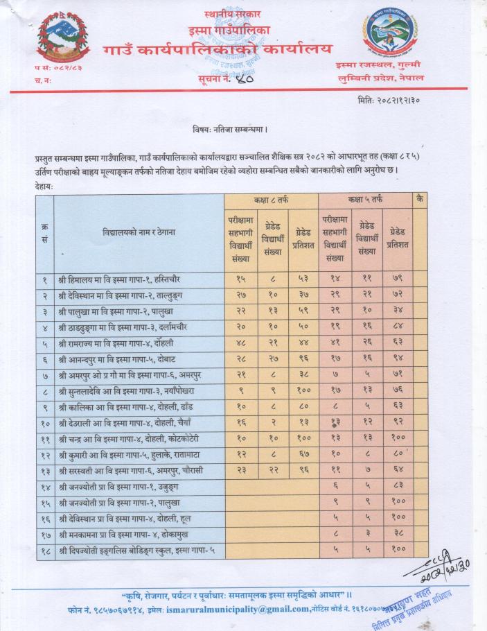 नतिजा सम्बन्धमा ।