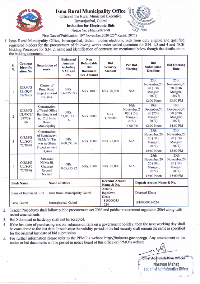 E_Bidding मार्फत वोलपत्र आह्वानको सूचना