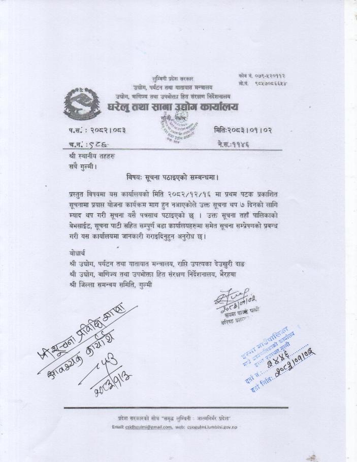 सम्बन्धित सबैको जानकारीको लागि ।