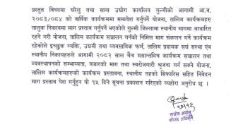 सेवा समयः- साेही दिन , सर्जमिनकाे हकमा बढीमा ३ दिनभित्र